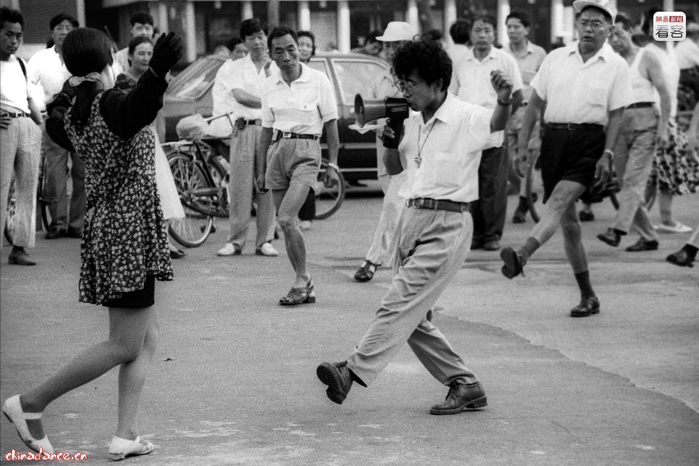 1990年,云南省通海縣,六一鄉的老年健身隊跳起了迪斯科健身舞,而此前在80年代,迪斯科舞曾被定性為“自由化”屬于被禁之列。 攝影/安哥 1991年7月,上海波特曼酒店對面,街頭學習跳交誼舞的市民。與眾不同的是,這里沒有“碰擦擦”的舞曲相伴,喇叭里喊的是“一二三四,二二三四”的節奏。 攝影/雍和 1991年,改革開放正面臨著巨大的改變,人們的個性得到充分張揚,黑龍江省牡丹江市,正在廣場上跳舞的人們。 攝影/王文瀾 1992年12月,上海和平飯店“圣誕之夜”首次公開出現了“三點式”舞蹈女郎,當時一張門票要價888元,眾人有情緒激昂的,有目瞪口呆的,也有面面相覷尷尬的。 攝影/雍和